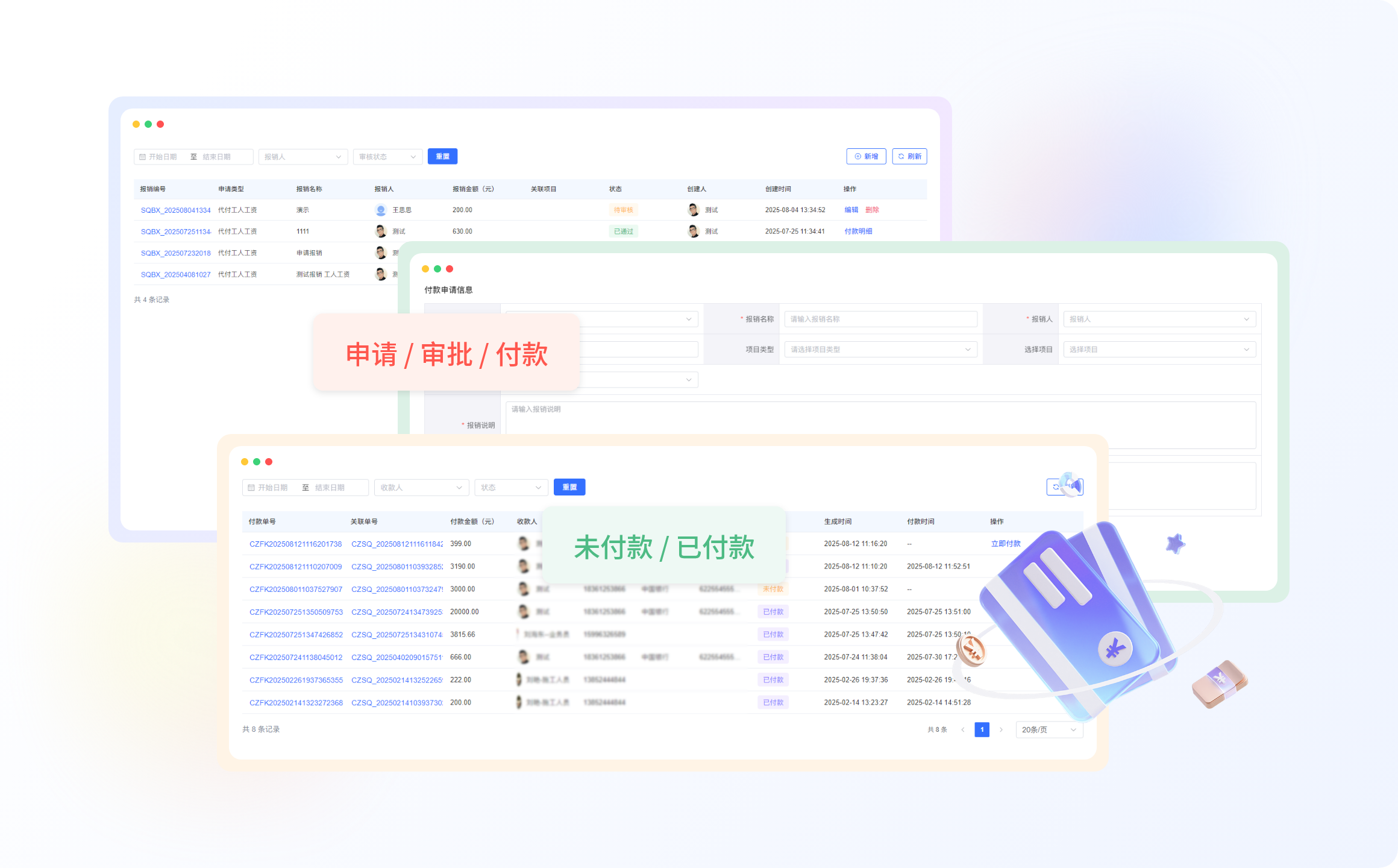 支持项目出差/劳务结算/佣金结算/EPC等费用类型报销结算