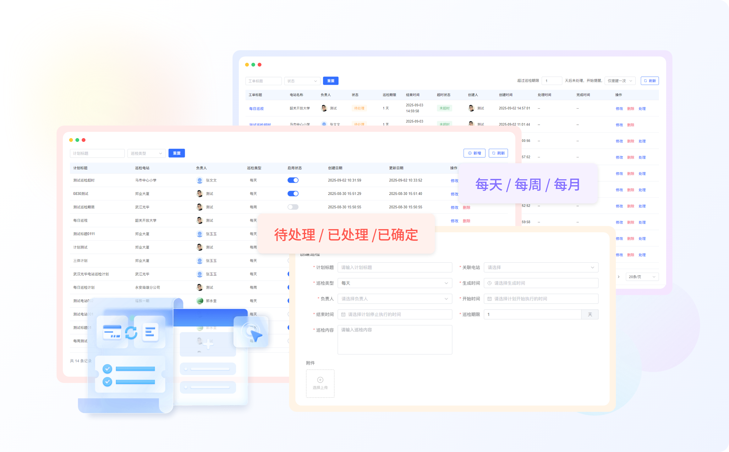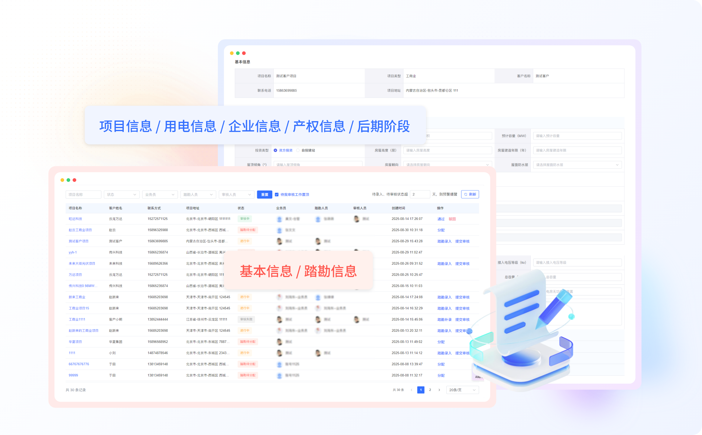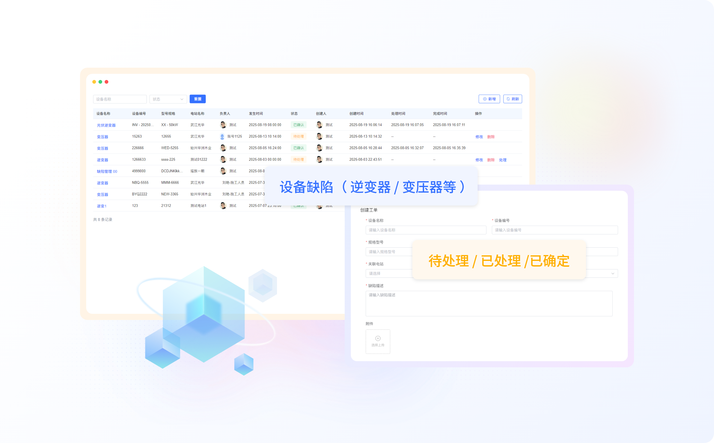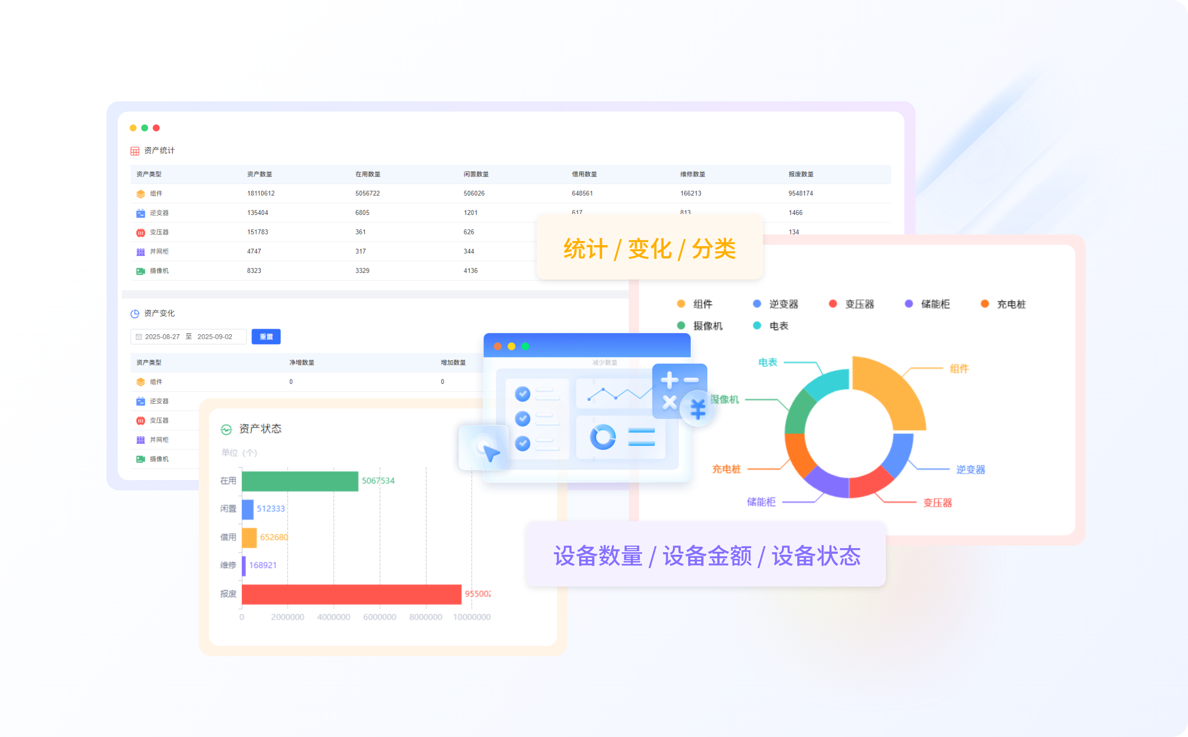 可对电站档案/还贷计划/租金结算/流量卡/电费缴纳/合同管理日常管理